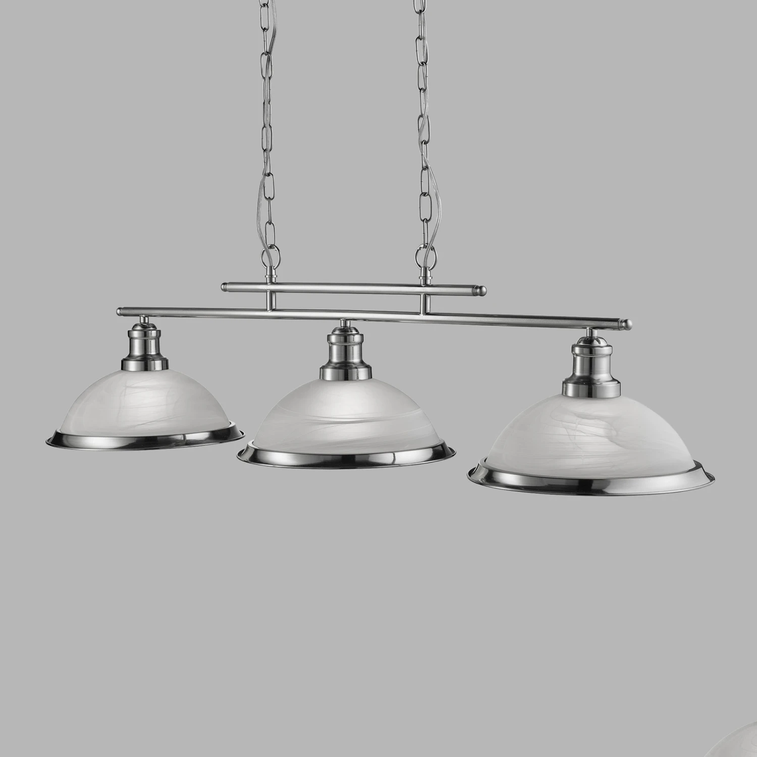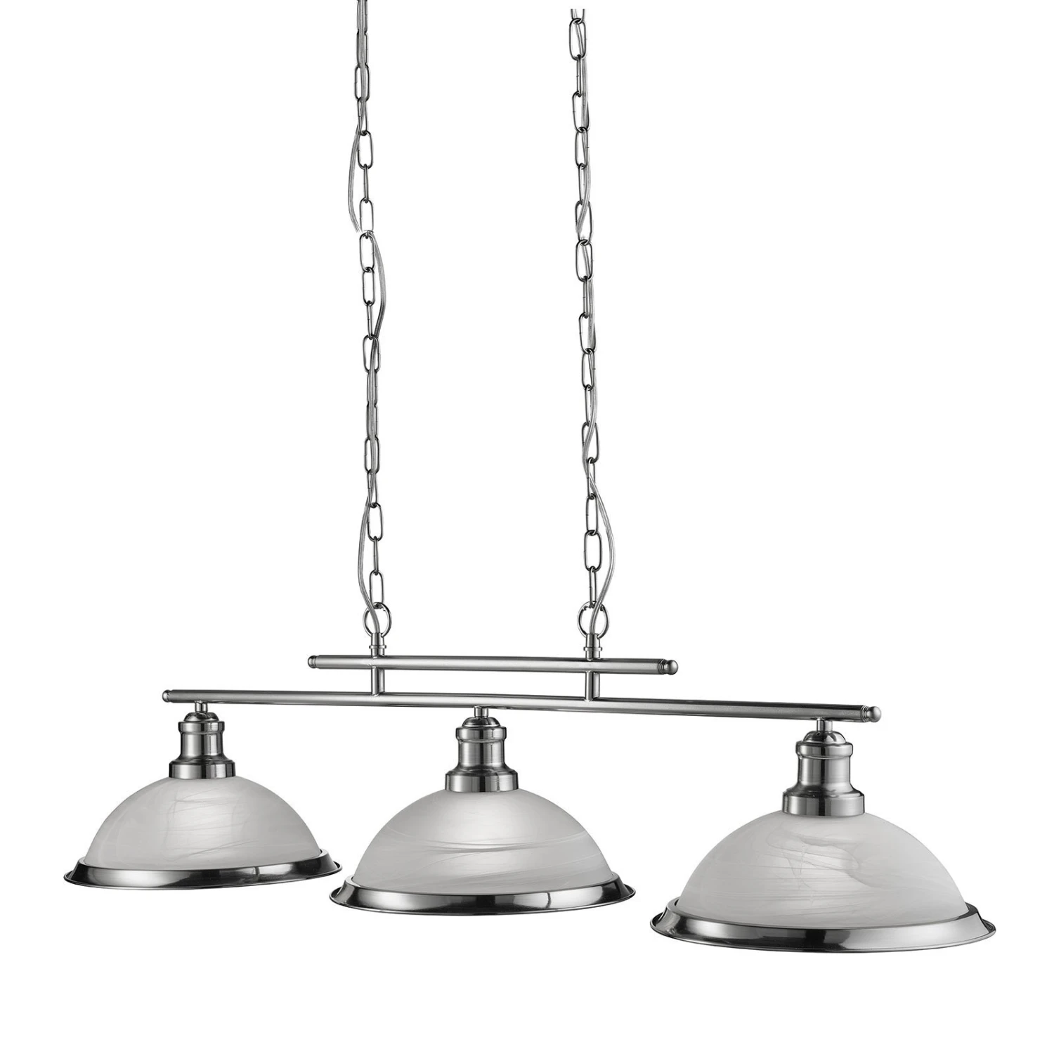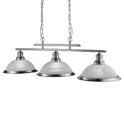 Bistro à trois lampes, luminaire suspendu en argent avec abat-jour en verre