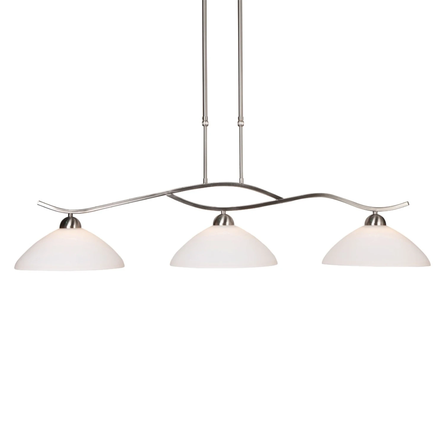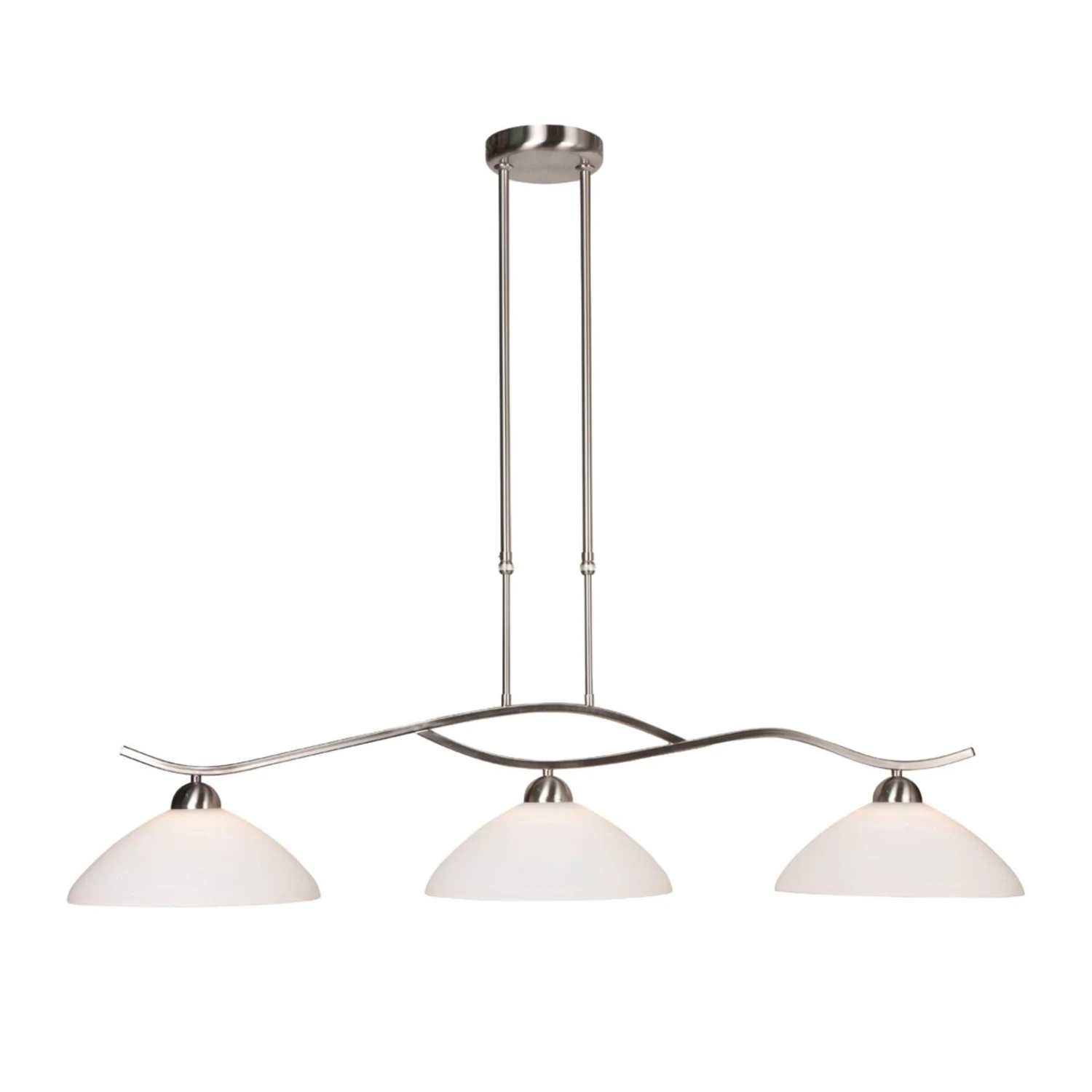 Suspension à trois lampes Capri au design plein d’élanLa suspension Capri apporte un élan élégant dans le salon. Trois abat-jour arrondis en verre satiné sont fixés à sa structure métallique esthétique. Équipés d’ampoules à économie d’énergie, ils assurent un éclairage économique. Grâce à son design décoratif et à son éclairage uniforme, elle attire tous les regards au-dessus de la table à manger. Sa suspension est réglable de 80 à 125 cm.