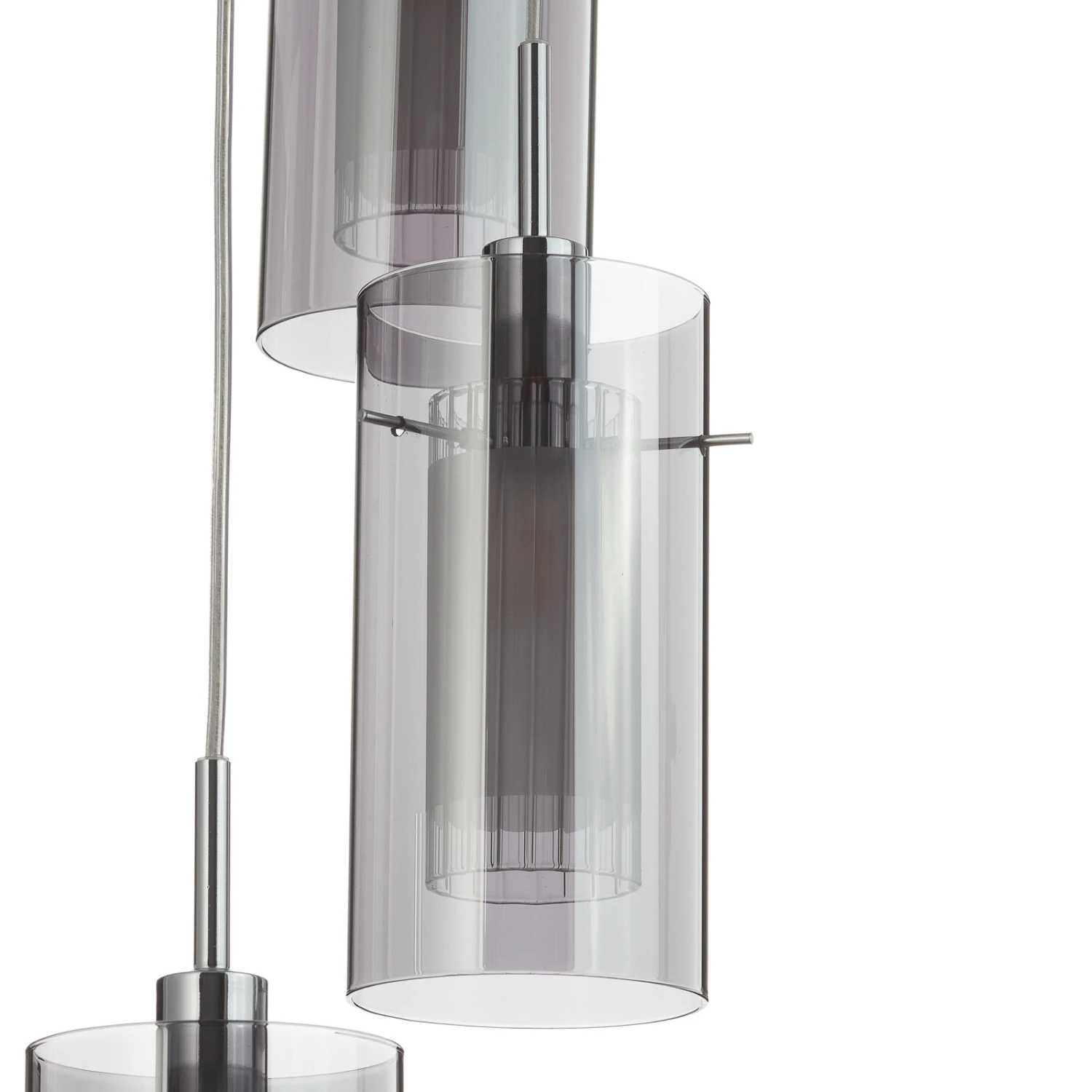 Le luminaire suspendu Duo 2 est un véritable accroche-regard dans tout salon moderne. Le chrome brillant est ici habilement combiné avec des nuances de verre gris fumé. Cependant, les nuances elles-mêmes ont une particularité : elles sont doubles. On utilise du verre givré à l’intérieur et du verre fumé transparent à l’extérieur. Ces deux éléments combinés créent un effet d’éclairage enchanteur qui peut briller au plafond de la salle de séjour ou dans l’entrée d’une maison.
