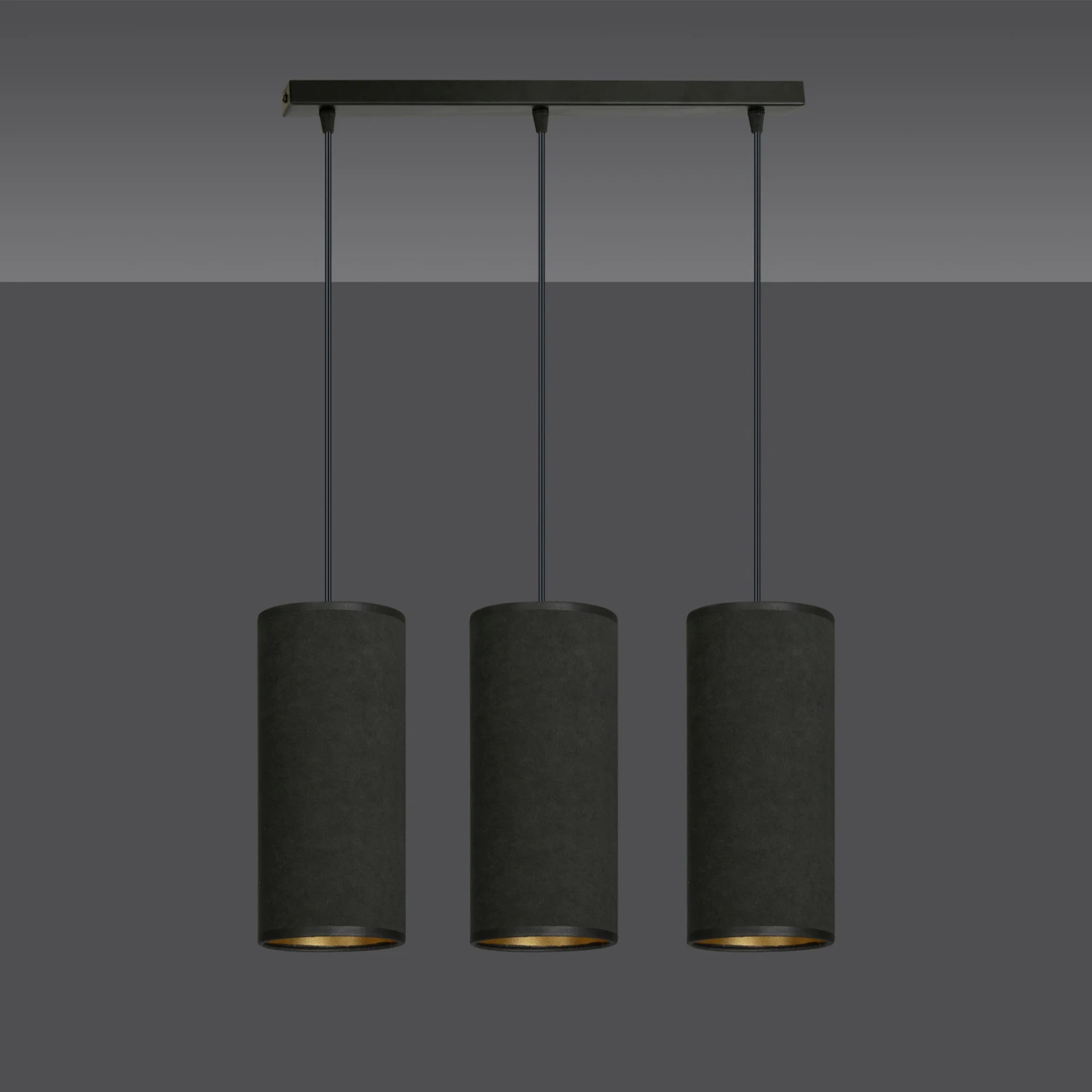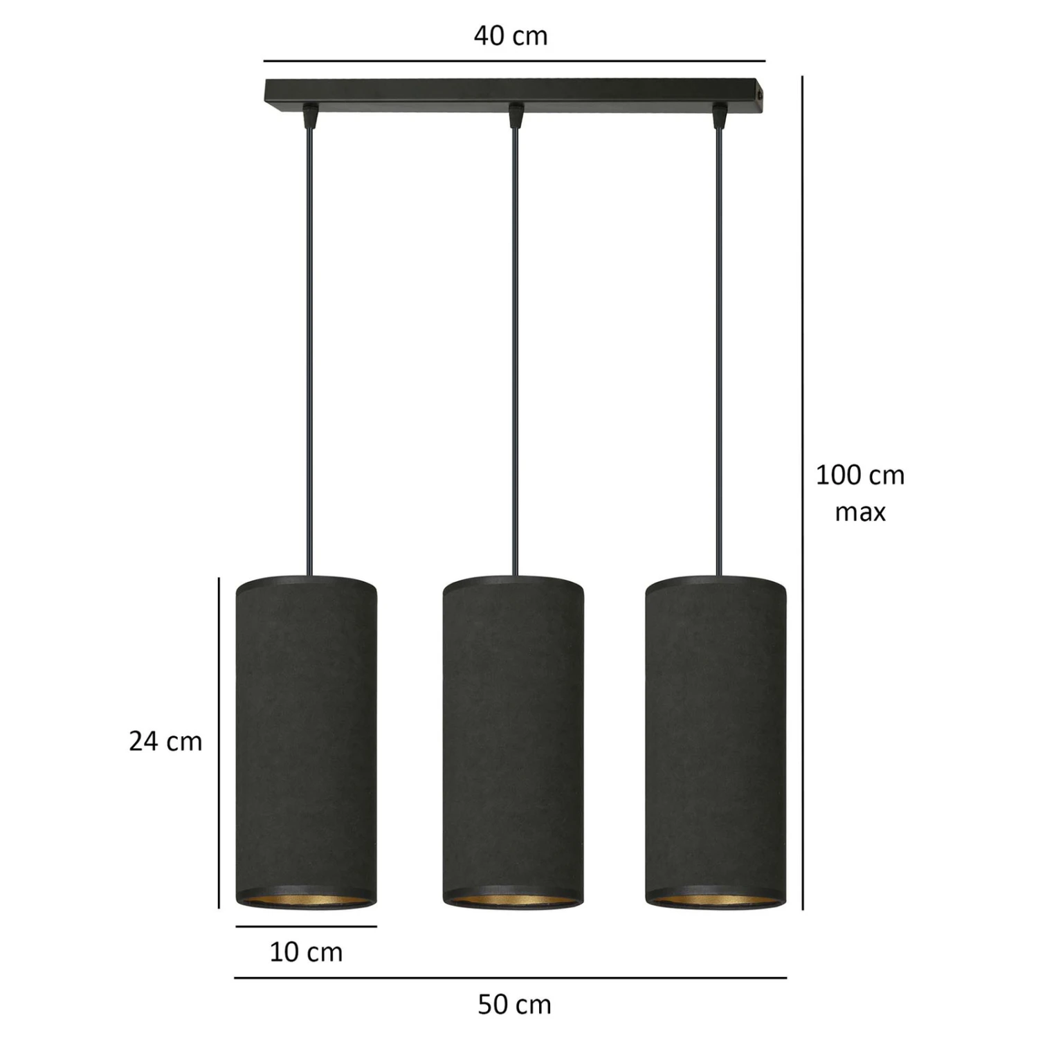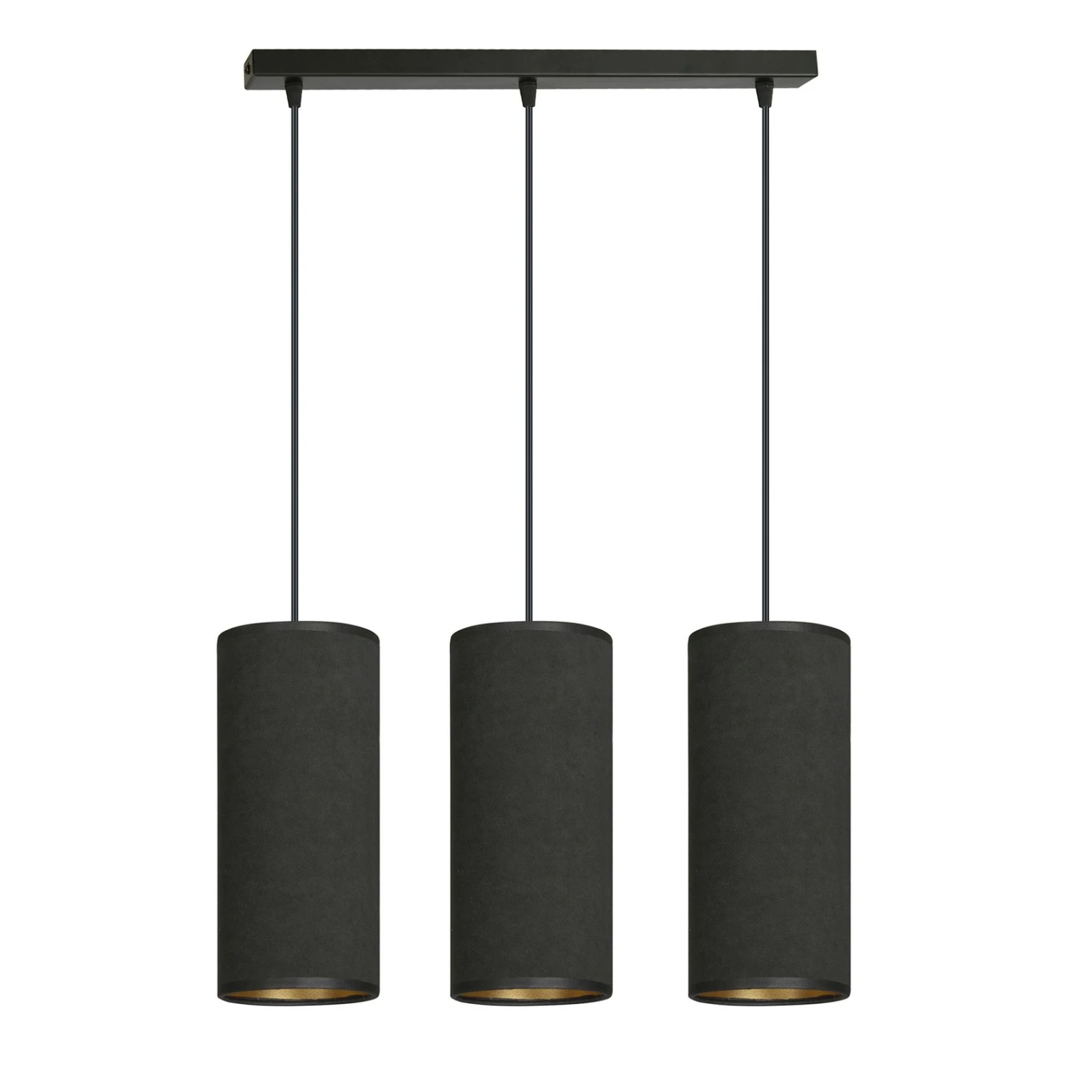 Suspension Joni Tissu Allongée 3 Lampes Noir Doré