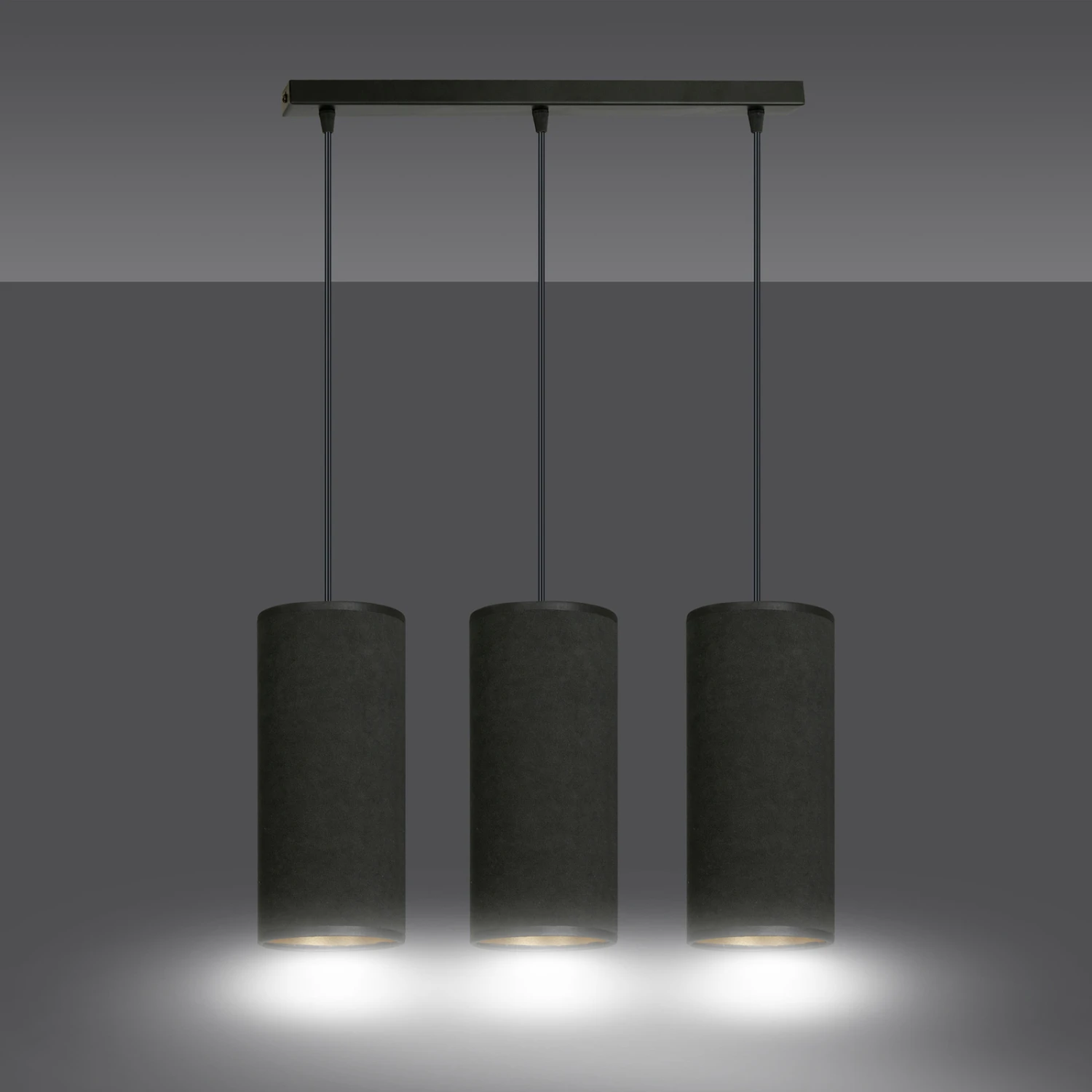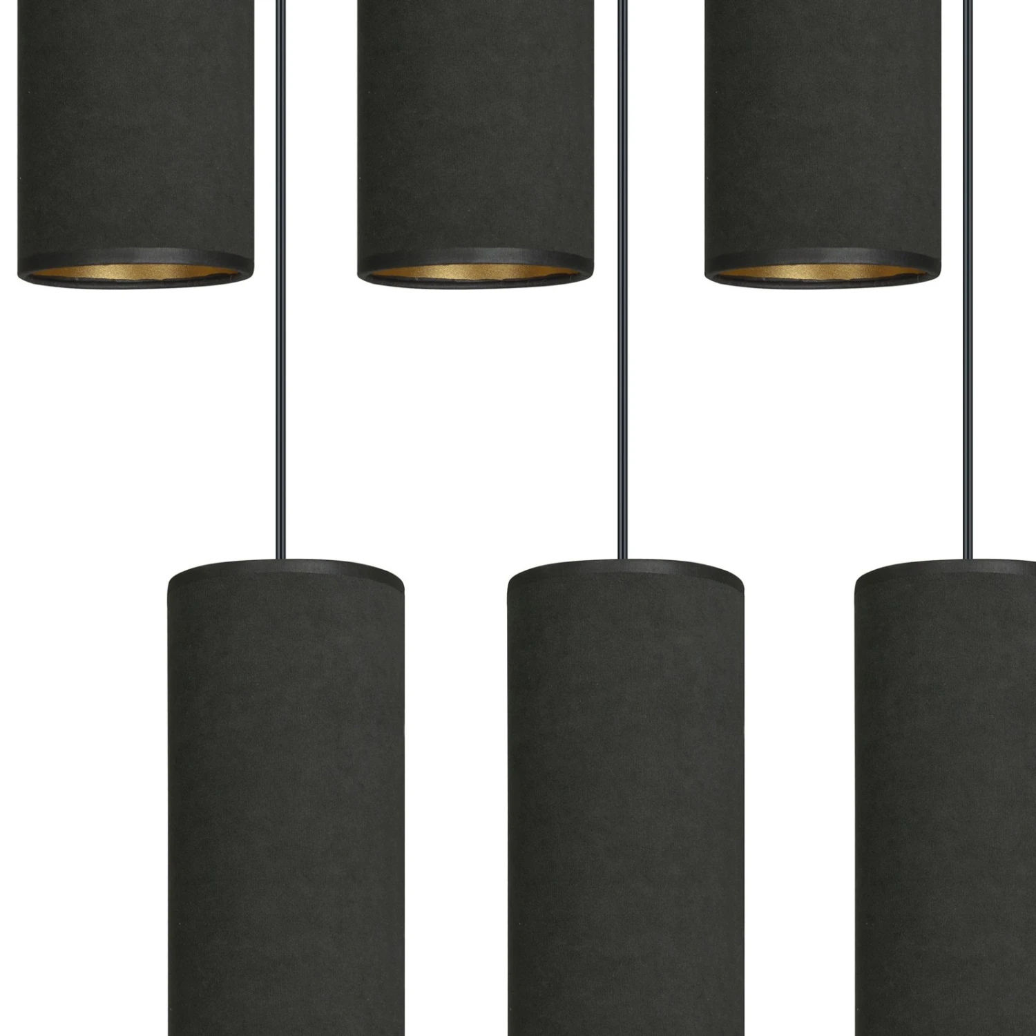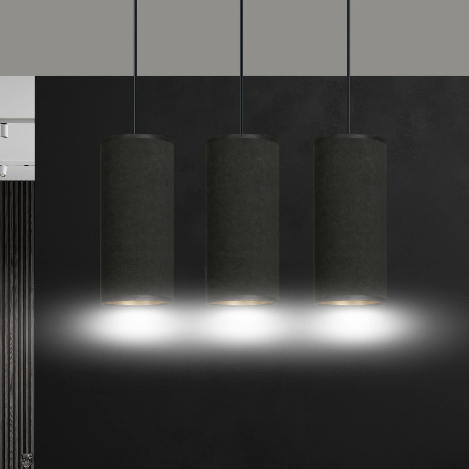 Suspension Joni Tissu Allongée 3 Lampes Noir Doré