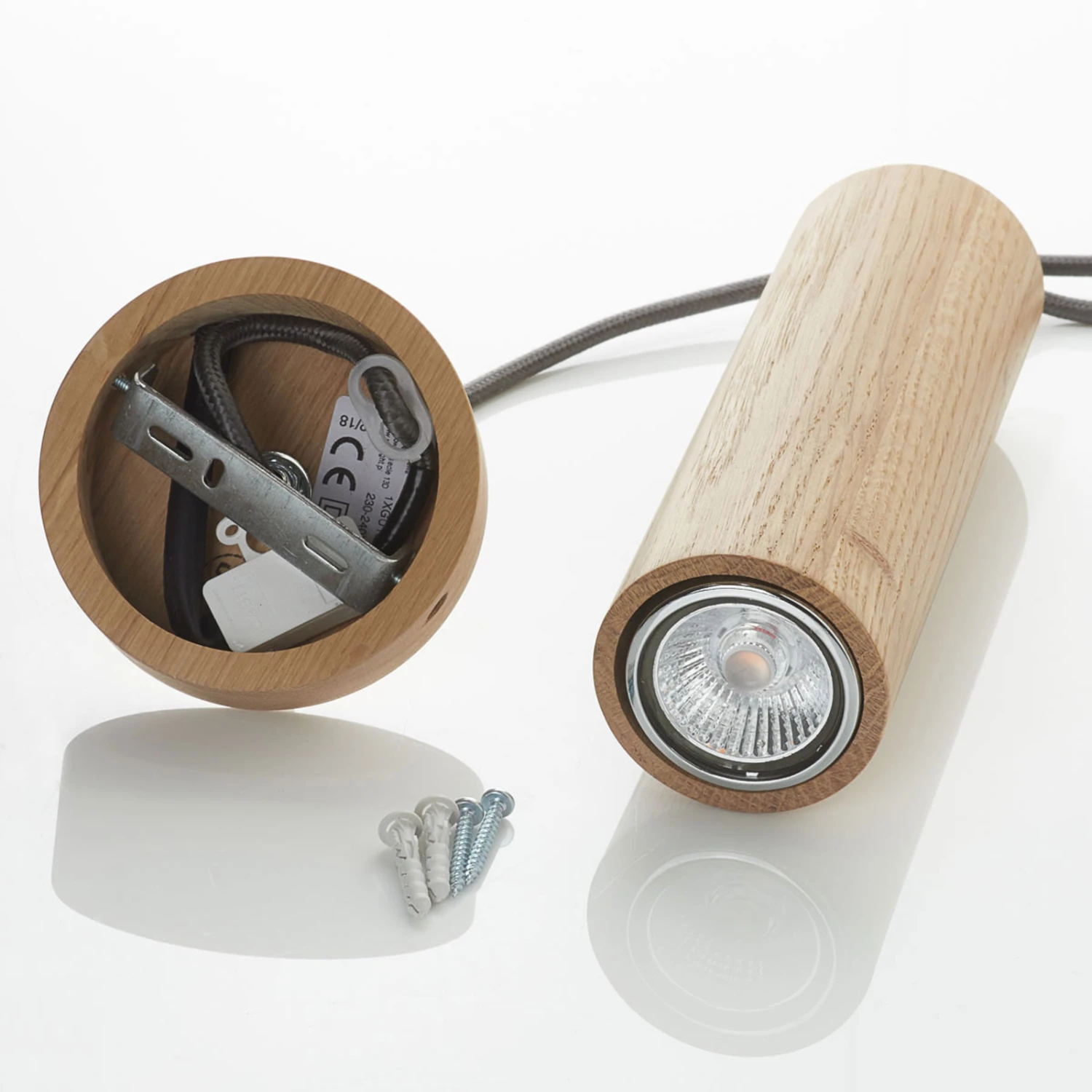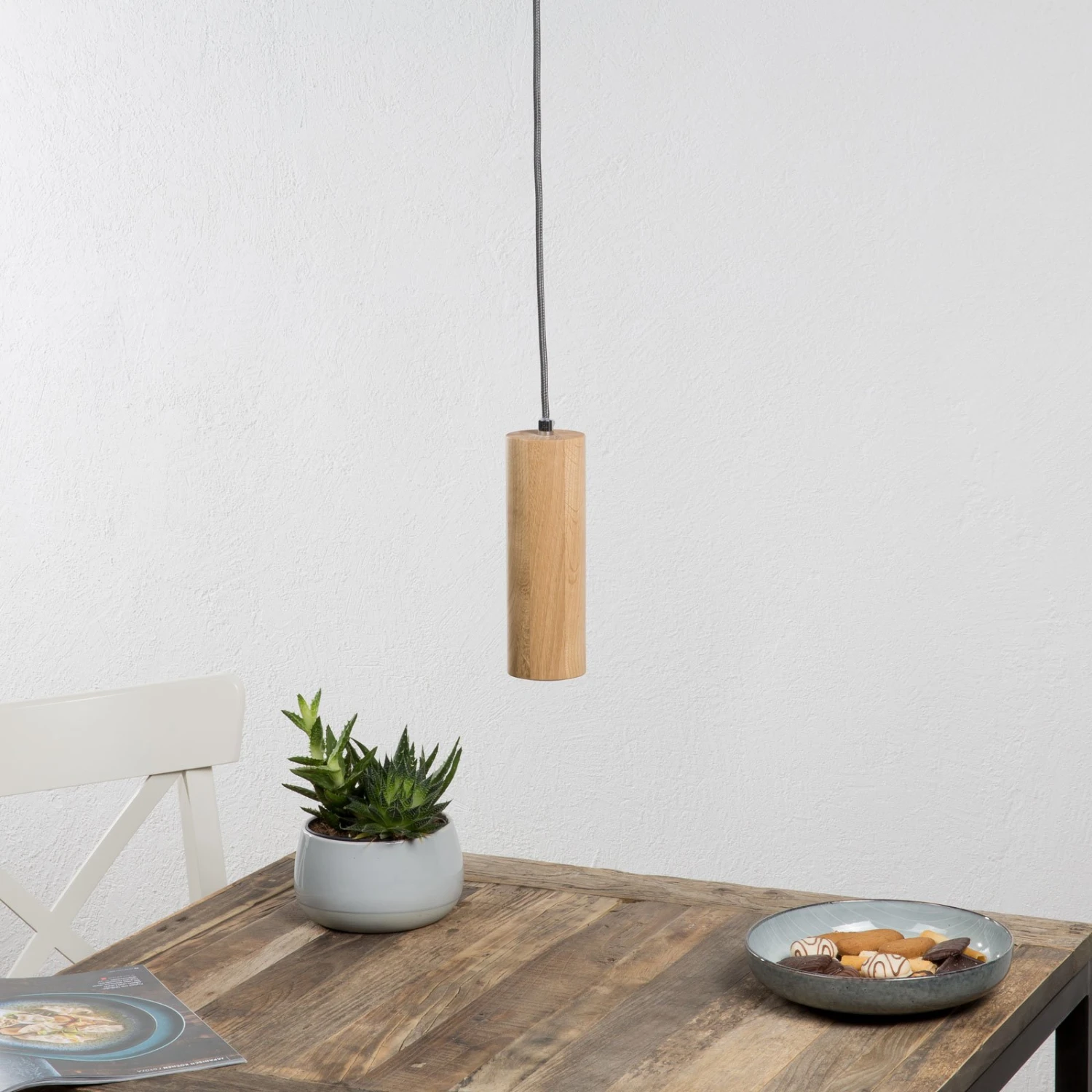 Intemporelle et élégante – Suspension LED PipeLe corps lumineux cylindrique de la suspension LED Pipe est fait pour être éclairé au-dessus de petites tables ou de comptoirs, de préférence dans les cuisines, les salons ou les salles à manger. Le ton chaud du bois de chêne huilé fait de cette petite suspension LED un éclairage intemporel qui s’intègre à merveille dans de nombreux intérieurs différents. Le baldaquin est également assorti en bois et complète parfaitement le design harmonieux. L’ampoule LED fournie éclaire en outre dans une teinte blanc chaud et peut être remplacée à tout moment.