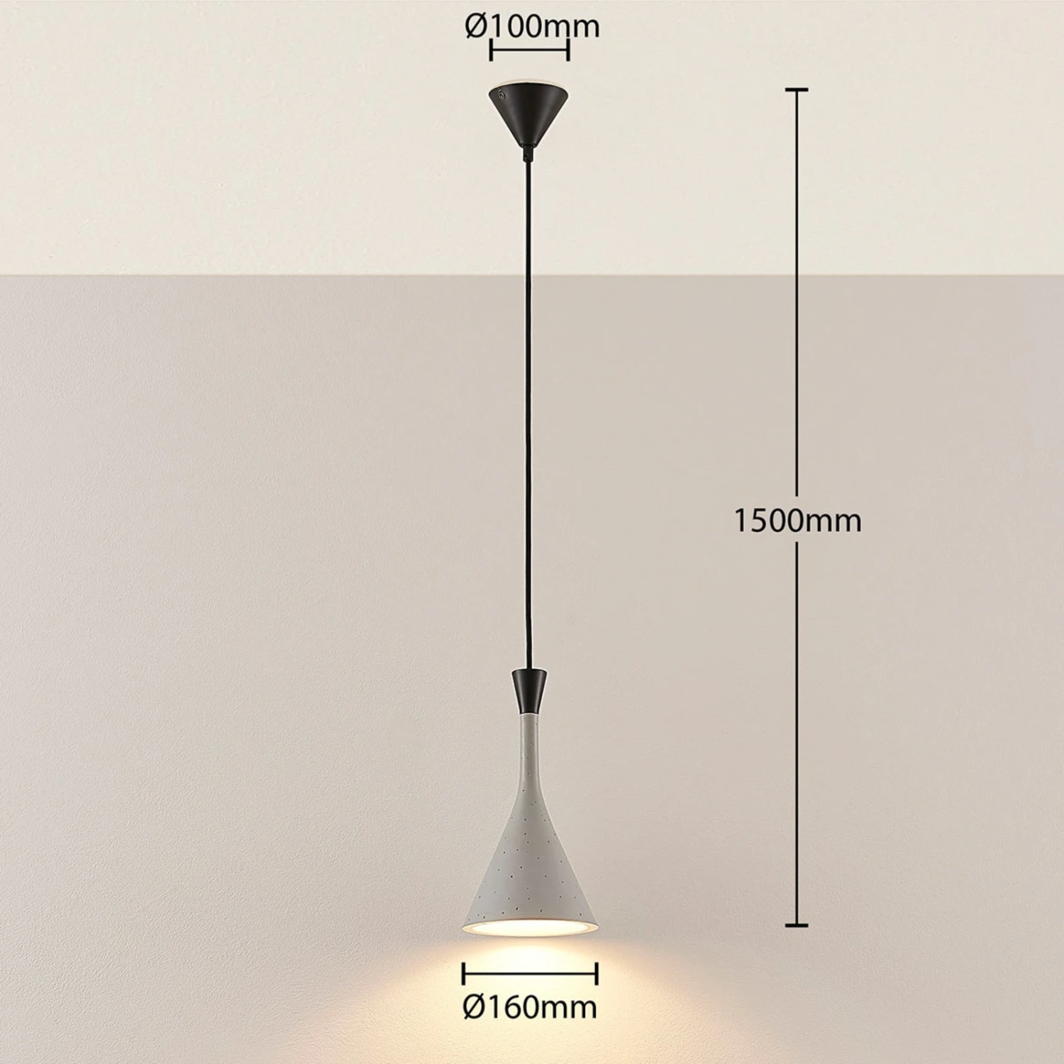Suspension Flynn de forme conique, aspect béton