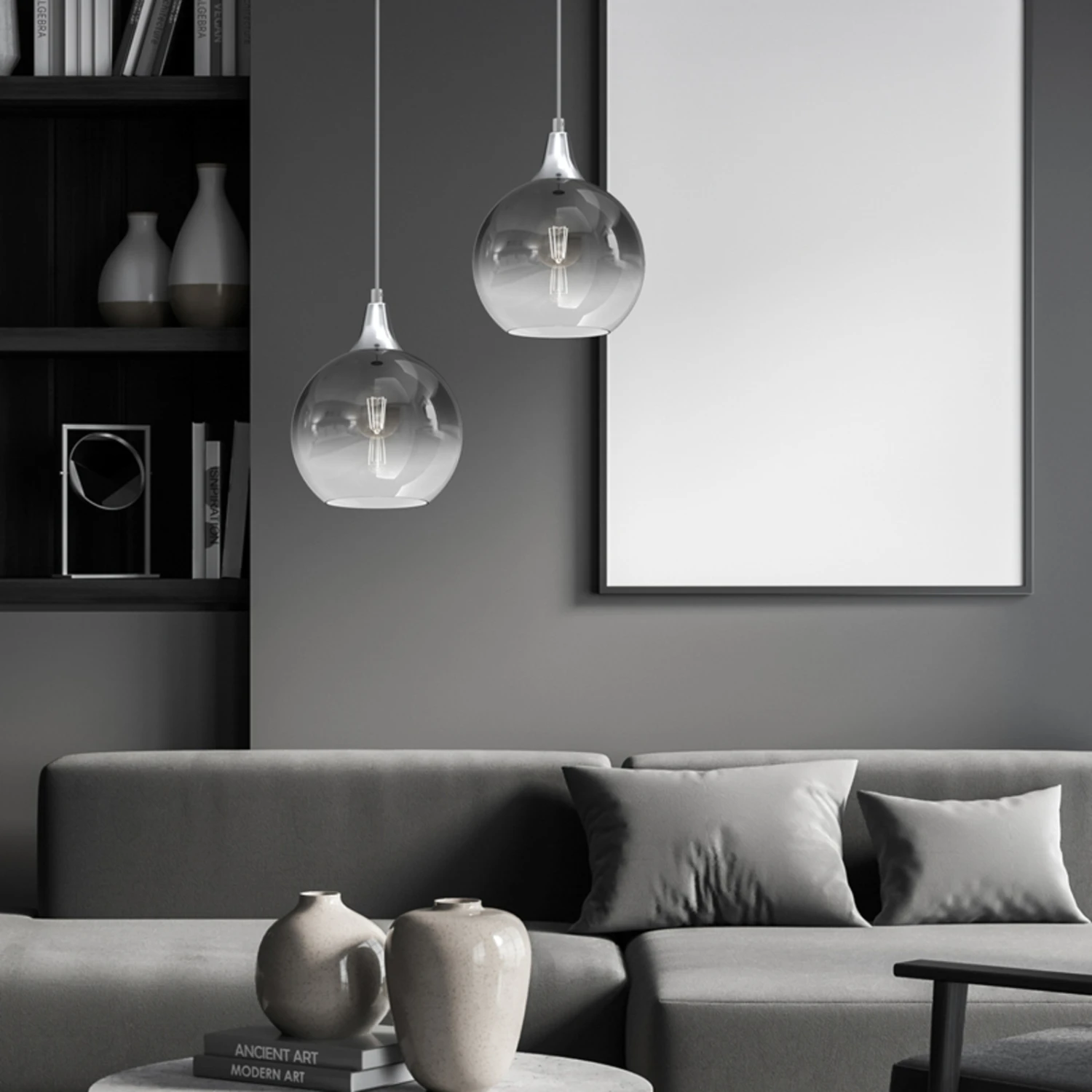 Suspension Monte En Verre, à 1 Lampe, Argentée