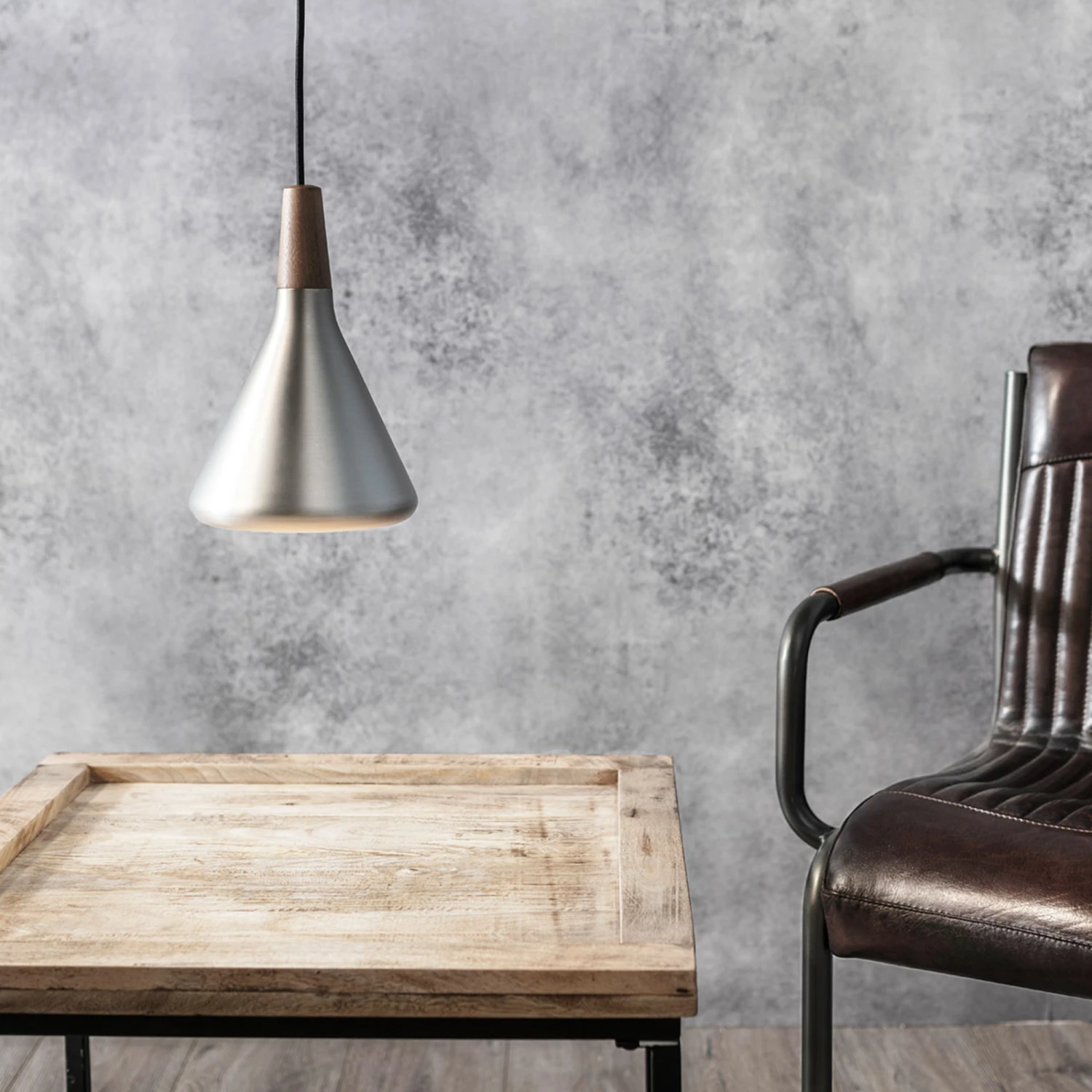 L’abat-jour de la lampe à suspendre Nori est composé d’un abat-jour en métal à l’aspect acier, qui dispose en outre d’un bel élément en bois sur la partie supérieure. Les matériaux et les couleurs contrastent entre eux et apportent une note à la fois moderne et naturelle à l’espace de vie. Nori diffuse la lumière en direction du sol et convient donc particulièrement bien pour éclairer la table du salon ou de la salle à manger, mais peut également être utilisé dans le couloir ou la chambre à coucher.