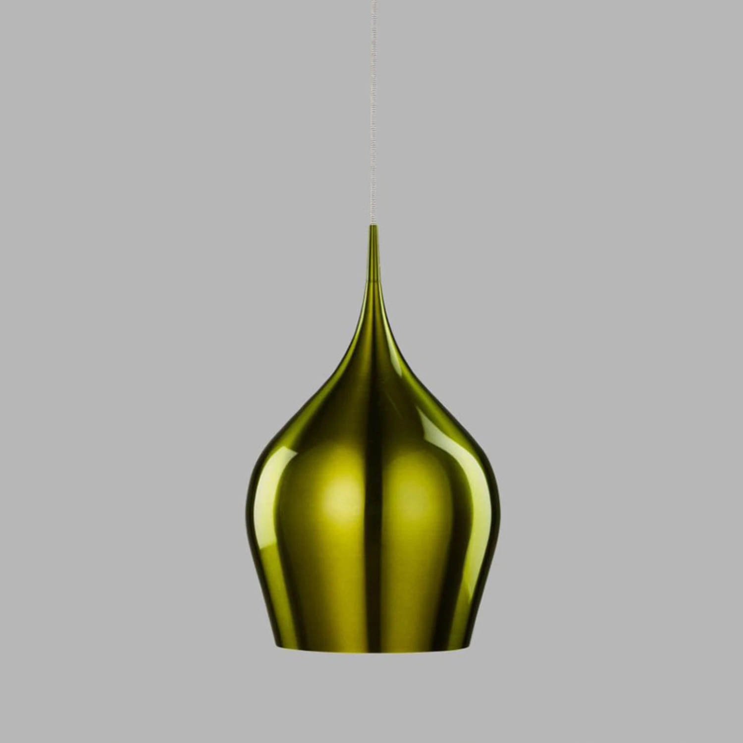 La suspension Vibrant avec une douille E27 présente un style original et particulièrement attractif. Le vert mousse puissant est une couleur rarement utilisée pour les luminaires. Cette couleur rend ainsi cette suspension encore plus unique. Cette originalité est complétée par la forme spéciale du luminaire : l’abat-jour est large et rond à la base, puis se termine en une petite pointe fine. Le modèle Vibrant est fabriqué en métal et est accroché à une suspension longue. Le contour forme ainsi une cloche ou une goutte, qui s’associe parfaitement à la couleur puissante pour créer un véritable chef d’œuvre. L’intérieur est marqué par la peinture blanche, qui créé un effet de lumière encore plus réussi lorsque l’ampoule E27 est allumée. Cette suspension est à la fois un véritable accroche-regard et un produit de qualité.